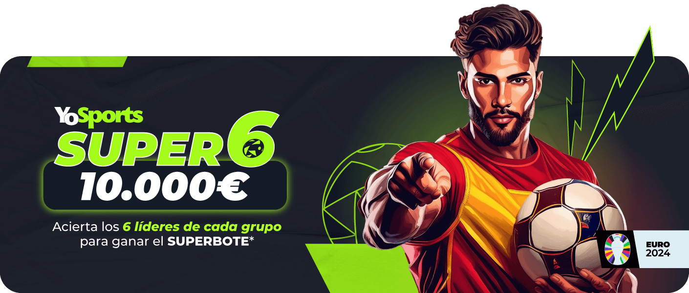 Elige quién crees que terminará primero de cada grupo de la Eurocopa 2024. Si aciertas las 6 selecciones puedes ganar 10.000€, si más de un jugador obtiene los 6, el bote se divide. Tu predicción no se puede cambiar.