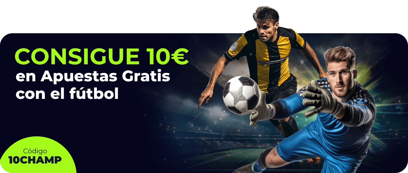 Para participar en esta promoción y recibir una apuesta gratis de 10€, el usuario tendrá que haber hecho un depósito de 30€ o más con el código promocional 10CHAMP y hacer una apuesta prepartido o en vivo en cualquier evento de fútbol con valor de 10€ durante el período promocional.