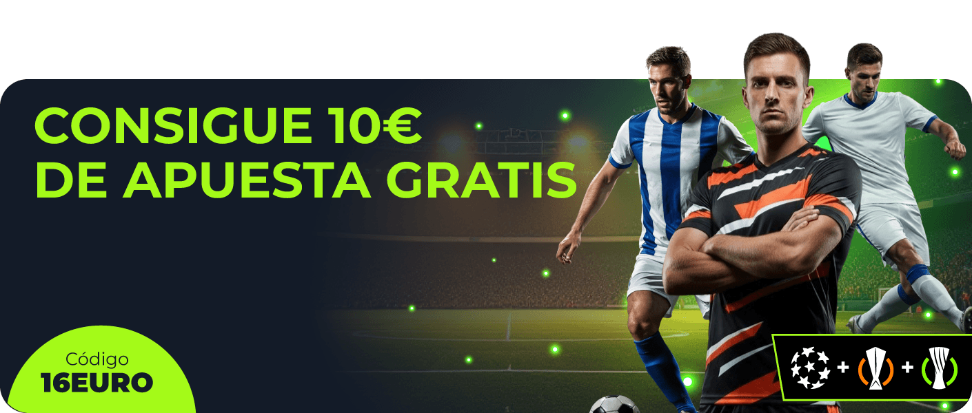 Para participar introduce el código 16EURO al realizar tu depósito de 30€ o más en YoSports. Después realiza una apuesta simple o prepartido de 30€ en los partidos de la Champions, Europa o Conference League. Al completar los pasos, recibirás 10€ en Apuesta Gratis para utilizar en mercados de LaLiga.