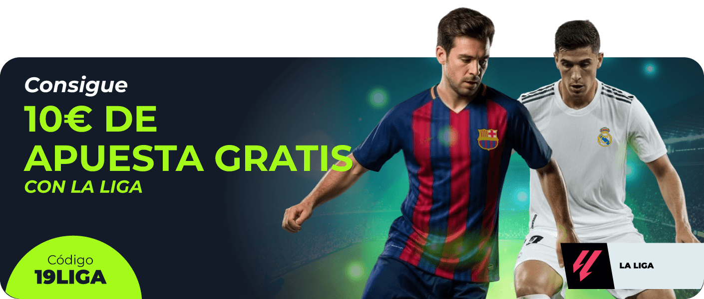 Para participar en esta promoción y recibir una apuesta gratis de 10€, el usuario tendrá que haber hecho un depósito de 20€ o más con el código promocional 19LIGA y hacer una apuesta prepartido o en vivo en cualquier evento deportivo de La Liga con valor de al menos 20€ durante el período promocional.