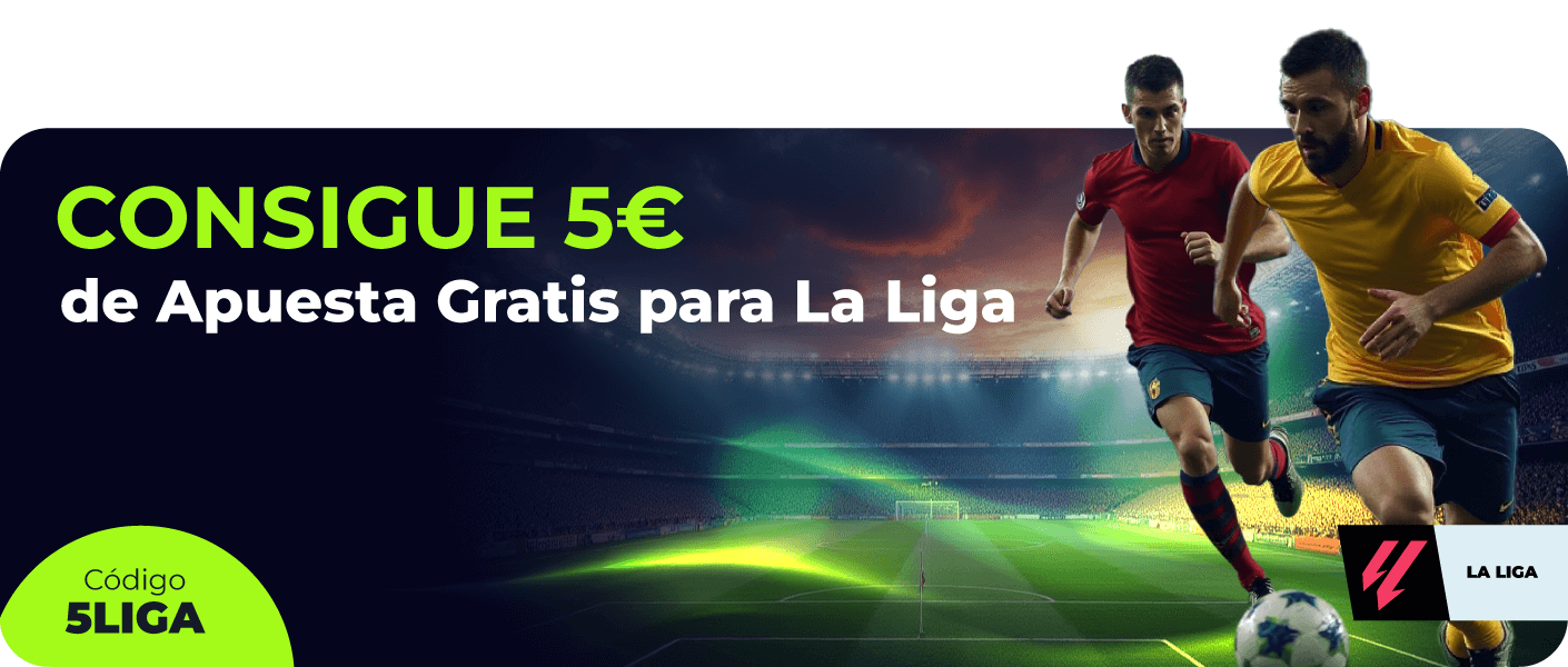 Para participar en esta promoción y recibir una apuesta gratis de 5€, el usuario tendrá que haber hecho un depósito de 10€ o más con el código promocional 5LIGA y hacer una apuesta prepartido o en vivo en cualquier evento de La Liga, con valor de al menos 10€ durante el período promocional.