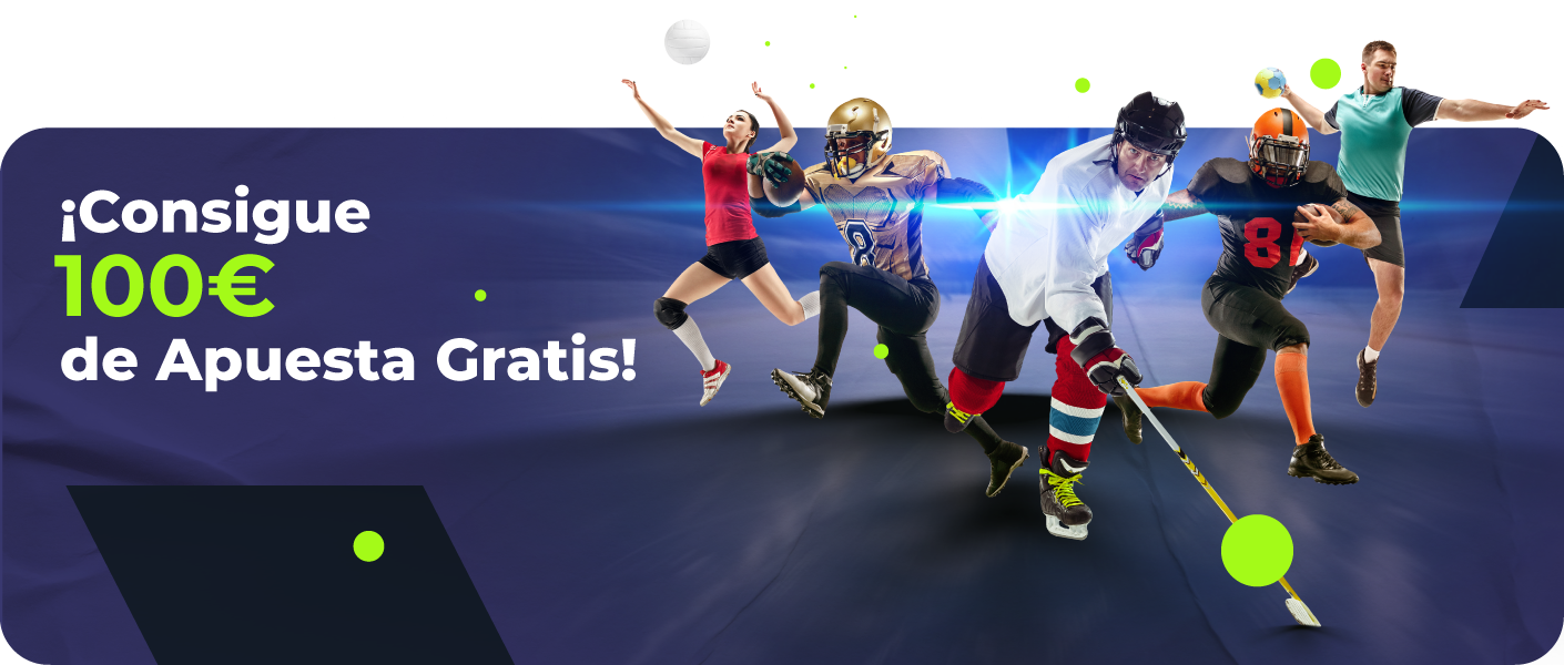 - Para participar en esta promoción y recibir una apuesta gratis de 100€, el usuario tendrá que haber hecho una Apuesta con valor de 100€ en cualquier evento deportivo durante el período promocional.
