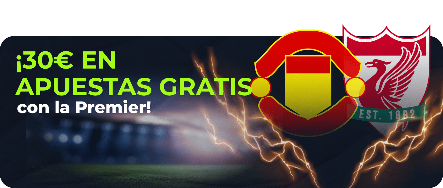 Realiza una apuesta simple de al menos 30€ con cuota mínima 1.8 (Prepartido, no en vivo) en el partido Manchester United vs Liverpool, que se celebrará el domingo, 1 de septiembre, a las 17:00h. Y si ocurre cualquiera de los siguientes sucesos en los 90 minutos de tiempo reglamentario, te llevas Apuestas Gratis:
