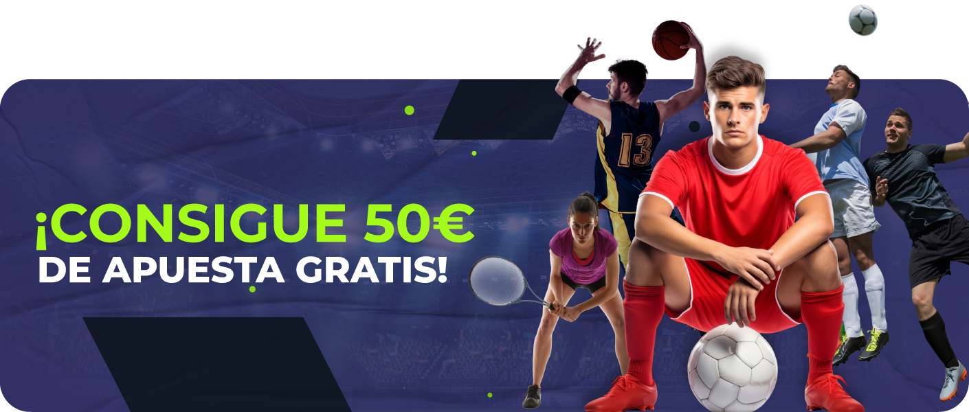 Para participar en esta promoción y recibir una apuesta gratis de 50€, el usuario tendrá que haber hecho una Apuesta con valor de 50€ en cualquier evento deportivo durante el período promocional.
