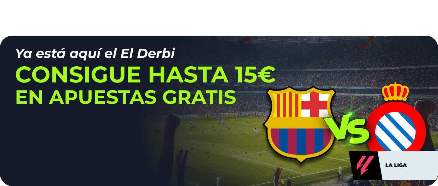 Disfruta en YoSports de este Derbi de Barcelona. Podrás conseguir hasta 15€ en Apuestas Gratis con esta promoción.
