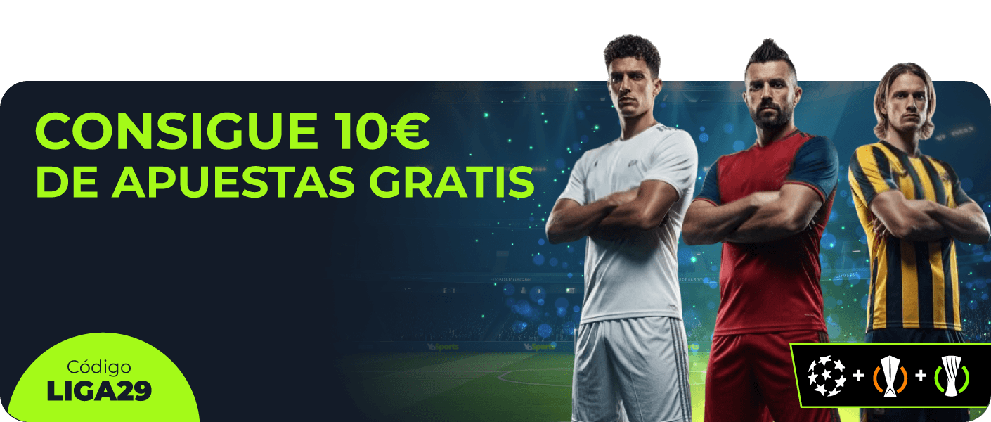 - Para participar en esta promoción y recibir 10€ de Apuesta Gratis en eventos de La Liga, el usuario tendrá que haber hecho un depósito de 30€ o más con el código promocional LIGA29 y hacer una apuesta en cualquier evento de Champions League, Europa League o Conference League con valor de al menos 30€ durante el período promocional.