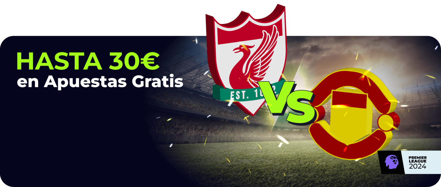 Apuestas elegibles para la promoción: Apuestas simples prepartido de 30€ o más. Cuota mínima 1.80. Apuestas realizadas en el evento Liverpool vs Manchester United del 5 enero de 2025 a las 17:30hrs. Sólo se tendrán en cuenta las apuestas que se hayan realizado en el periodo de la promoción.