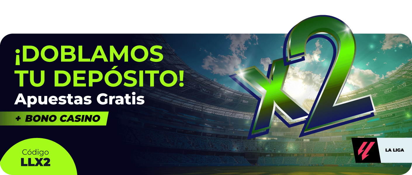 - Para participar en esta promoción y recibir una apuesta gratis de 10€ y 30€ en bono casino, el usuario tendrá que haber hecho un depósito de 20€ o más con el código promocional LLX2 y hacer una apuesta únicamente en eventos de la primera división de La Liga, con valor de al menos 20€, durante el período promocional.