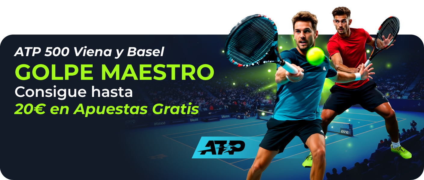 Haz apuestas simples pre-partido por valor de 10€ cada una con una cuota mínima de 1.50 en los encuentros de los torneos individuales masculinos en el torneo ATP 500 Viena y Basel. Si ganas al menos 5 de ellas conseguirás 20€ en Apuestas Gratis. ¡No te lo pierdas!