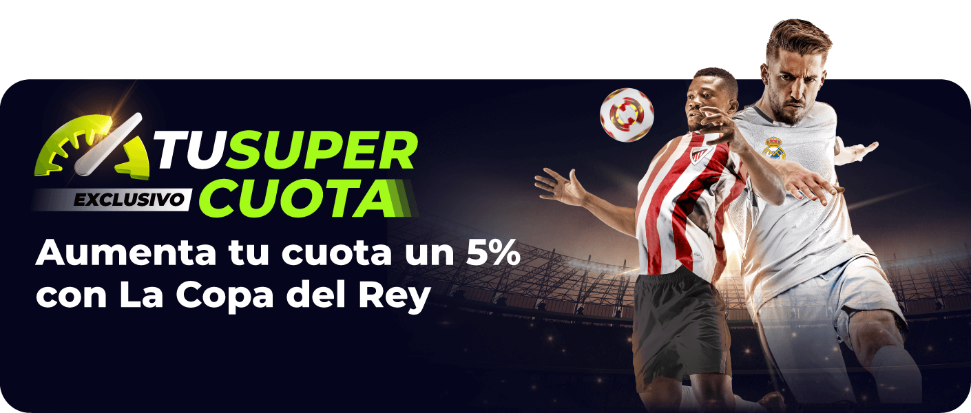Haz una apuesta prepartido de 3 selecciones o más con cuota de 1.30 o superior por selección en los partidos de La Copa del Rey y aumenta tu cuota final un 5% EXTRA.