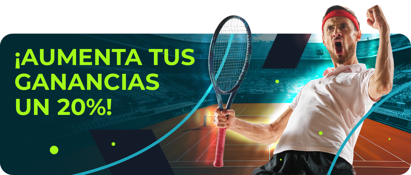Para lograrlo haz una apuesta pre-partido con 3 o más selecciones en los encuentros del Mutua Madrid Open con cuotas de 1.50 o más. ¡Y listo! Podrás aumentar tus posibles ganancias acumuladas un 20% extra.