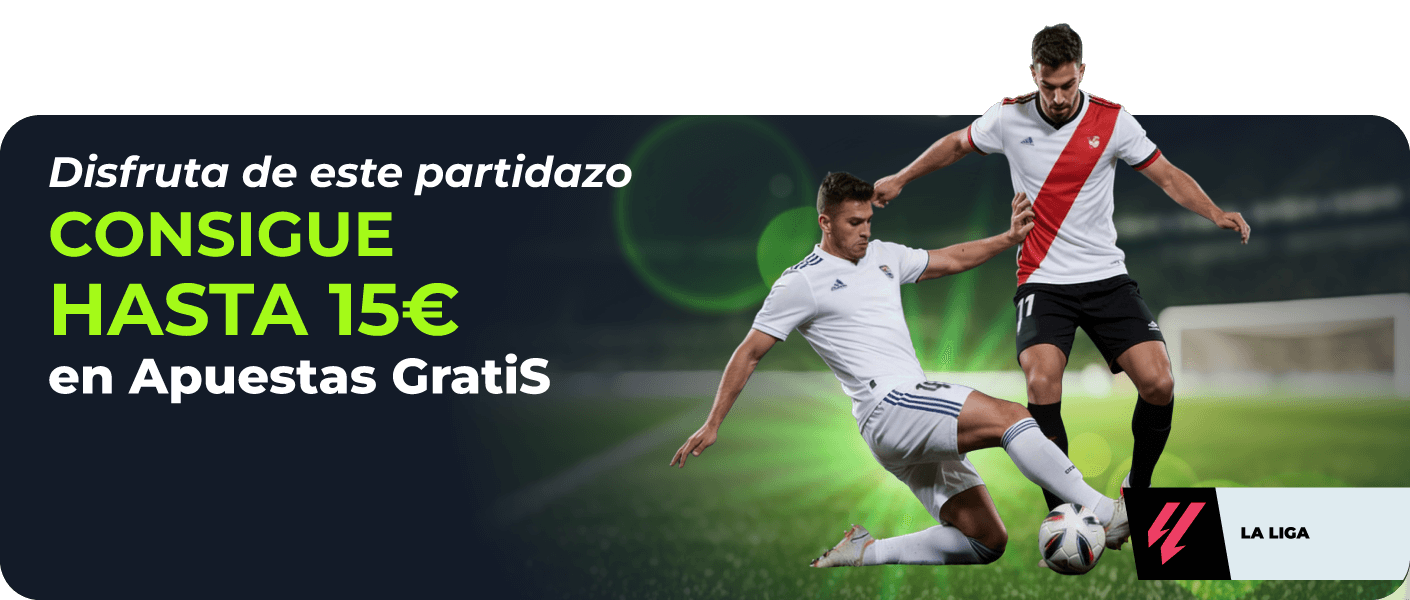 Tendrás que hacer una apuesta simple prepartido de 20€ o más con cuota mínima de 1.80 en el evento Real Madrid vs Rayo Vallecano de este domingo 1 de febrero a las 14h. Llévate 5€ de Apuesta Gratis por cada uno de los siguientes sucesos si ocurren durante los 90 minutos de partido: