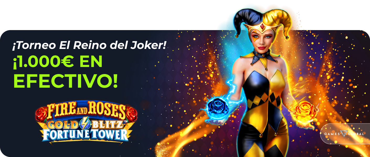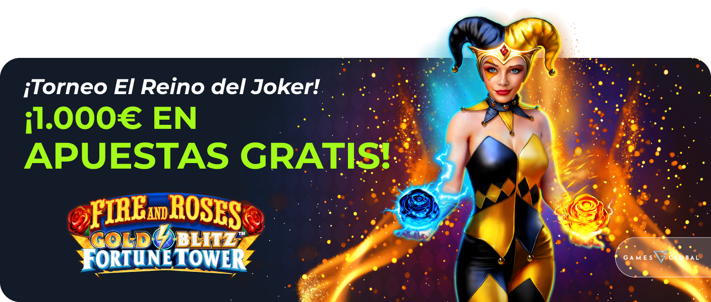 Del 9 al 15 de marzo celebramos con el Reino del Joker, nuestro torneo de Games Global. Durante toda la semana repartiremos 1.000€ en Apuestas Gratis entre los jugadores que consigan las mejores posiciones en la clasificación. Para participar inscríbete aquí: