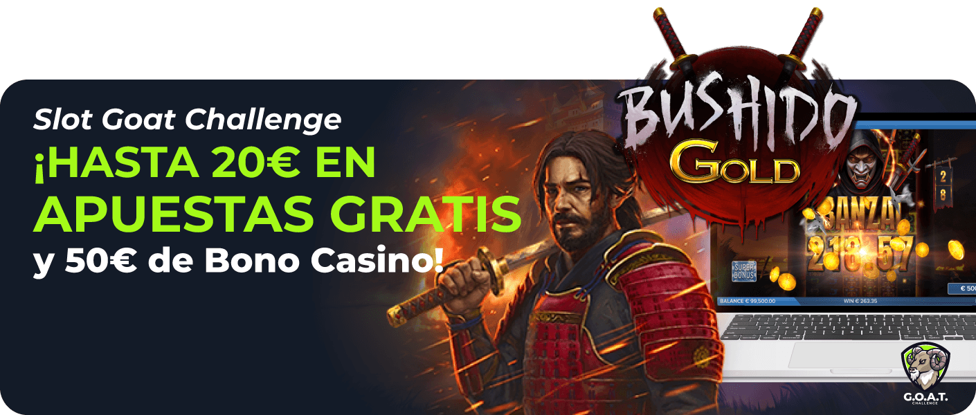Acepta el reto, descubre Bushido Gold y te podrás convertir en el GOAT: ¡Juega en esta slot del 13 al 19 de abril y consigue bonos! Para participar primero inscríbete aquí: