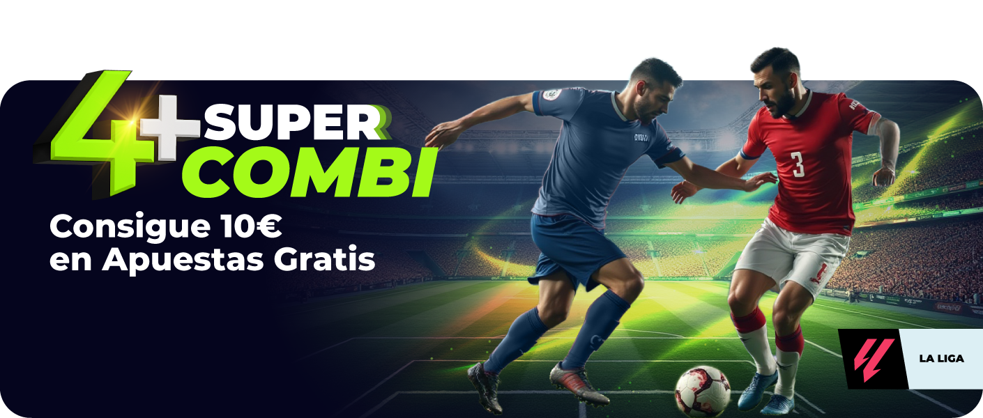 - Realiza una apuesta combinada de 30€ o más con 4 o más selecciones en partidos de LALIGA, prepartido o en vivo, durante el periodo promocional.