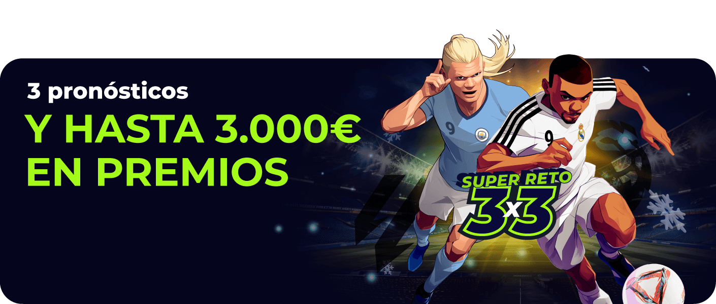 - Para participar en la promoción Super Reto 3x3 y ser elegible para el reparto del premio de 3.000€, cada participante debe realizar 3 apuestas simples, prepartido por valor de 5€ o más cada una al resultado correcto en los partidos seleccionados.