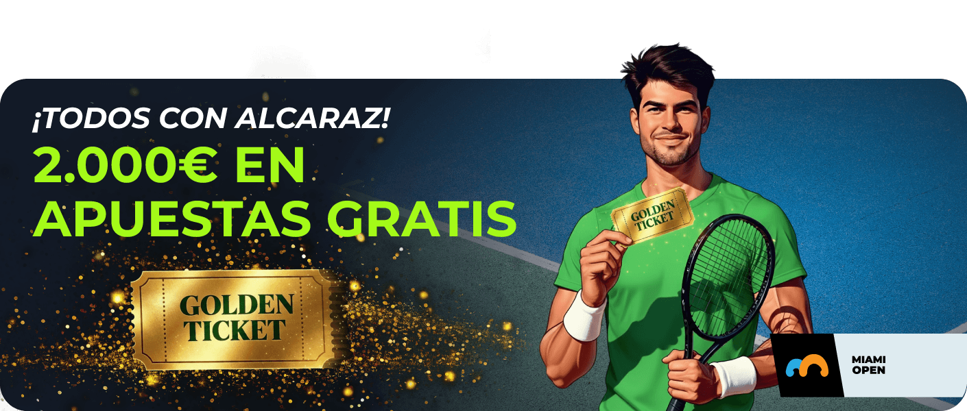 | Alcaraz llega a la final | Bote de 1.000€ en Apuestas Gratis + Sorteo de 10 Golden Tickets de 100€ en Apuestas Gratis |