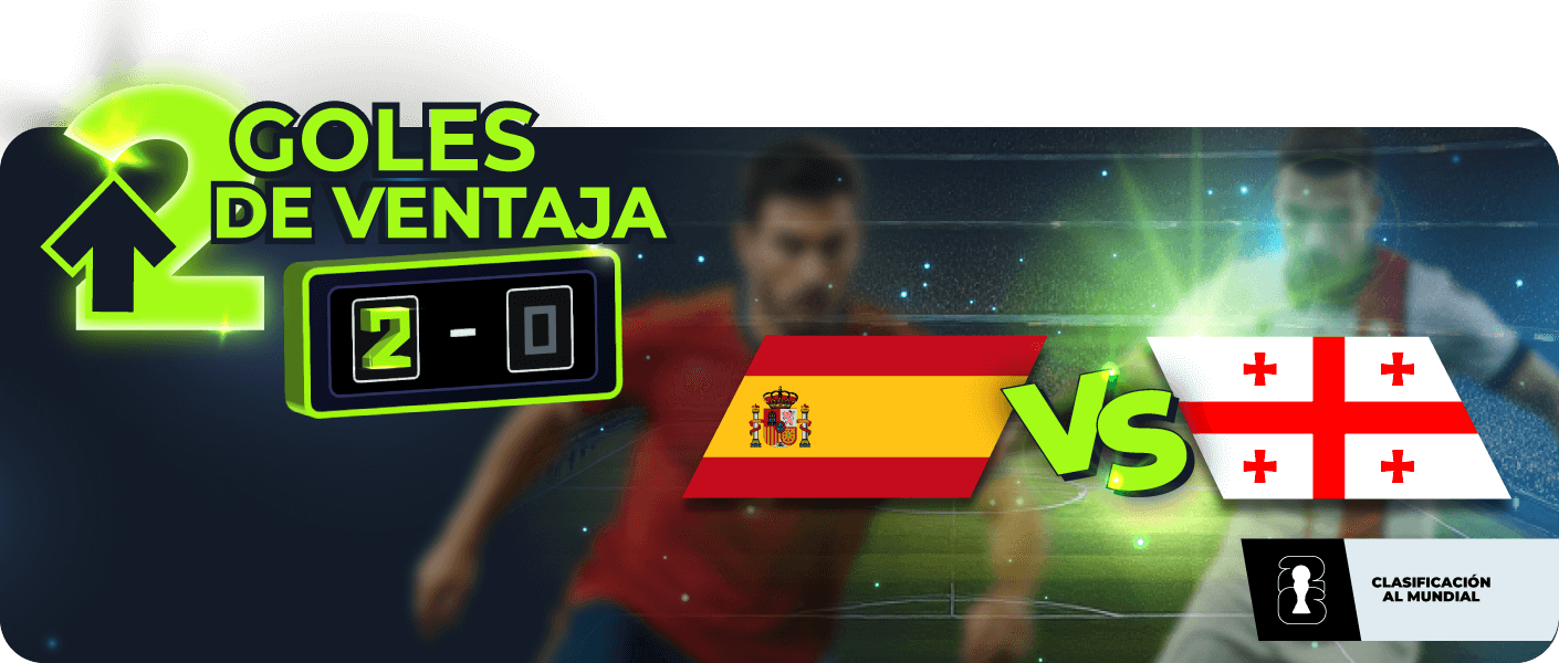 Haz una apuesta simple, pre-partido, de 20€ o más al mercado "Resultado Final" del partido España vs Georgia, y si el equipo al que apuestas obtiene 2 goles de ventaja en cualquier momento del encuentro pero pierde o empata el partido, te pagaremos tu apuesta hasta un máximo de 10€ en Apuestas Gratis.